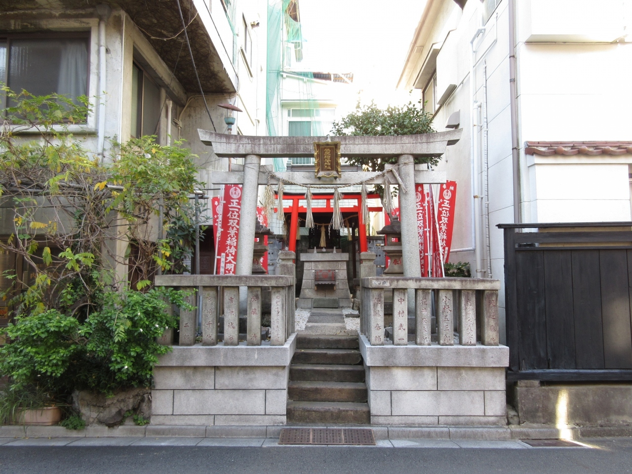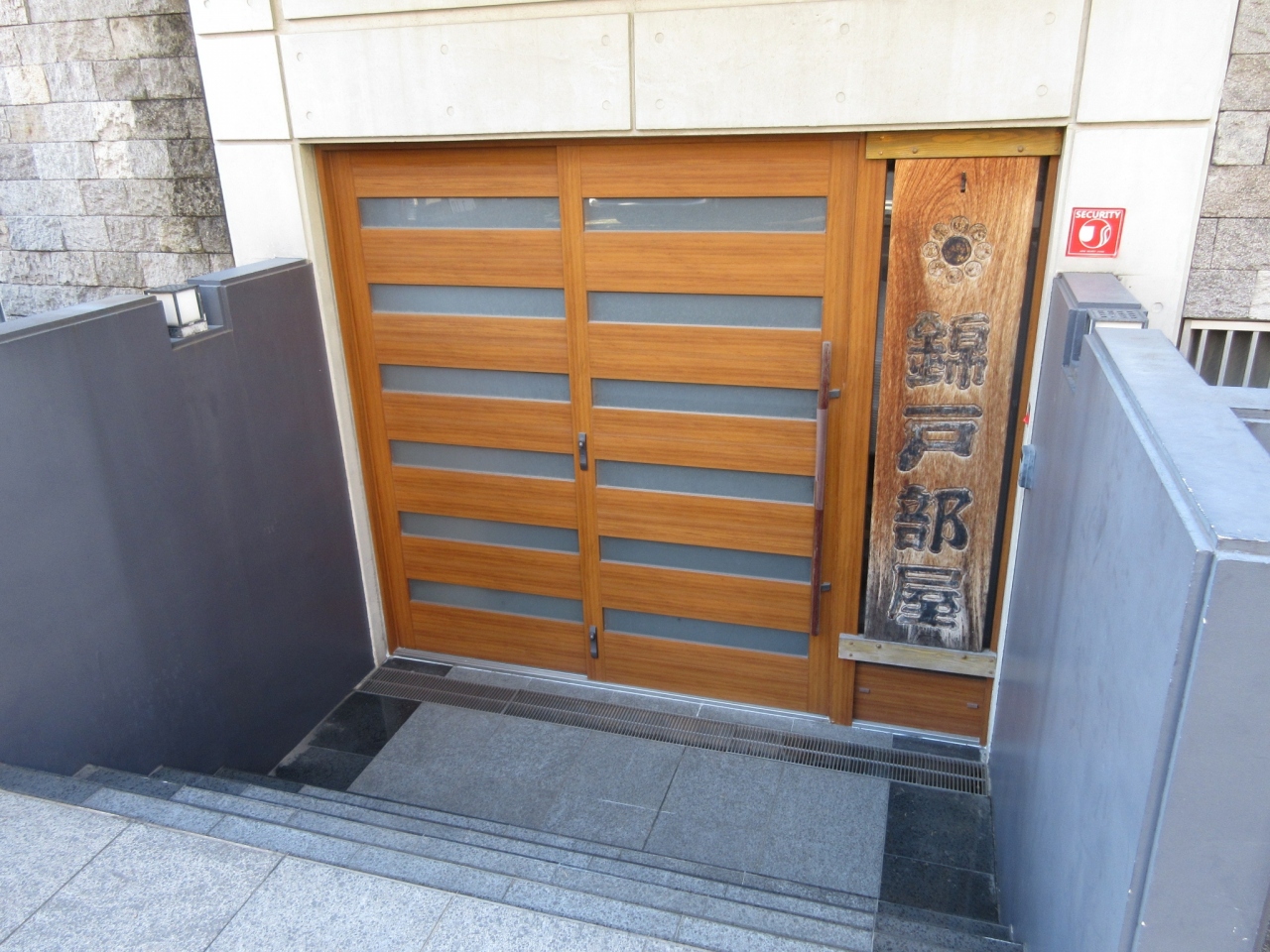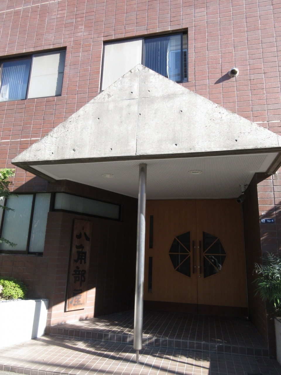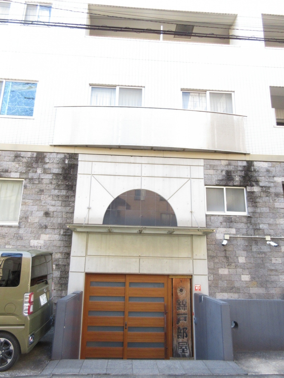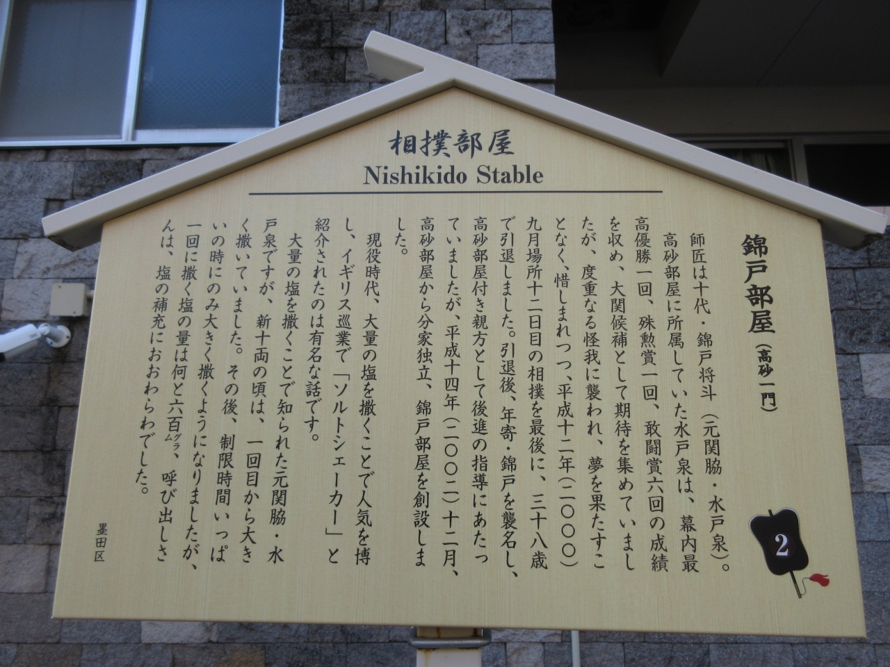 JR両国駅から徒歩5分ほど、葛飾北斎・生誕の地でもある「緑町公園」の通りを挟んだ向かい側に、看板が立っています。