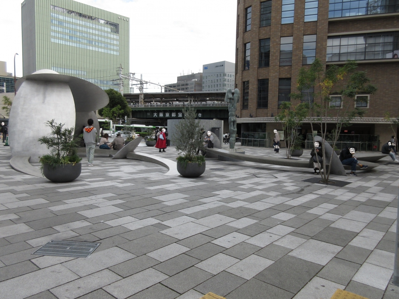 震災後、街の再開発とともに、何度か形を変えてきた広場だったと思いますが、当時の印象は「若者がタムロしている雑多な広場」という感じでした。今回 久しぶりに行ってみたところ、芸術作品みたいなモノや 観葉植物みたいなモノも設置するなど きれいに整備されており、タムロする若者も見られず、普通に会社員が休憩したり、待ち合わせに利用していました。