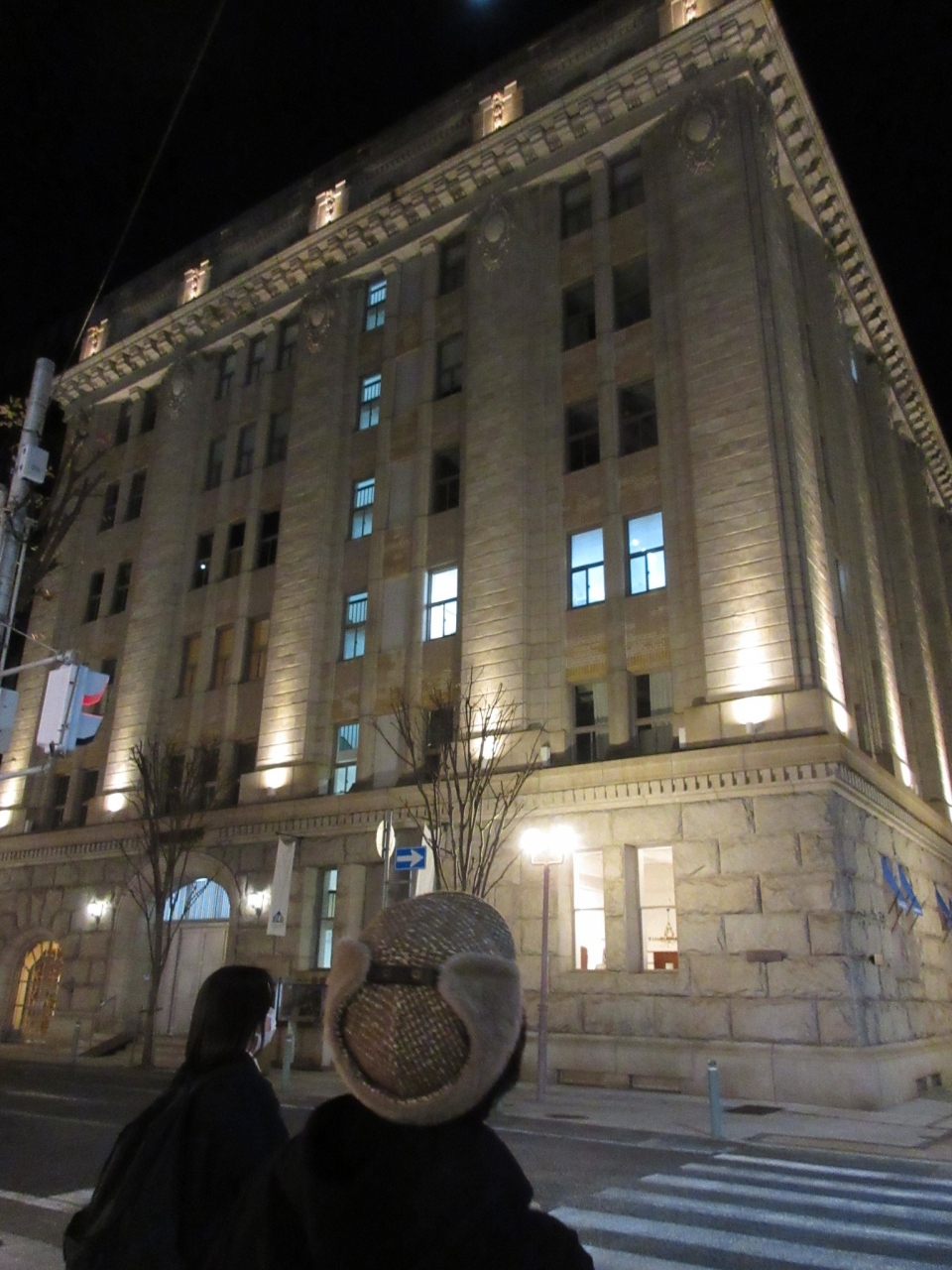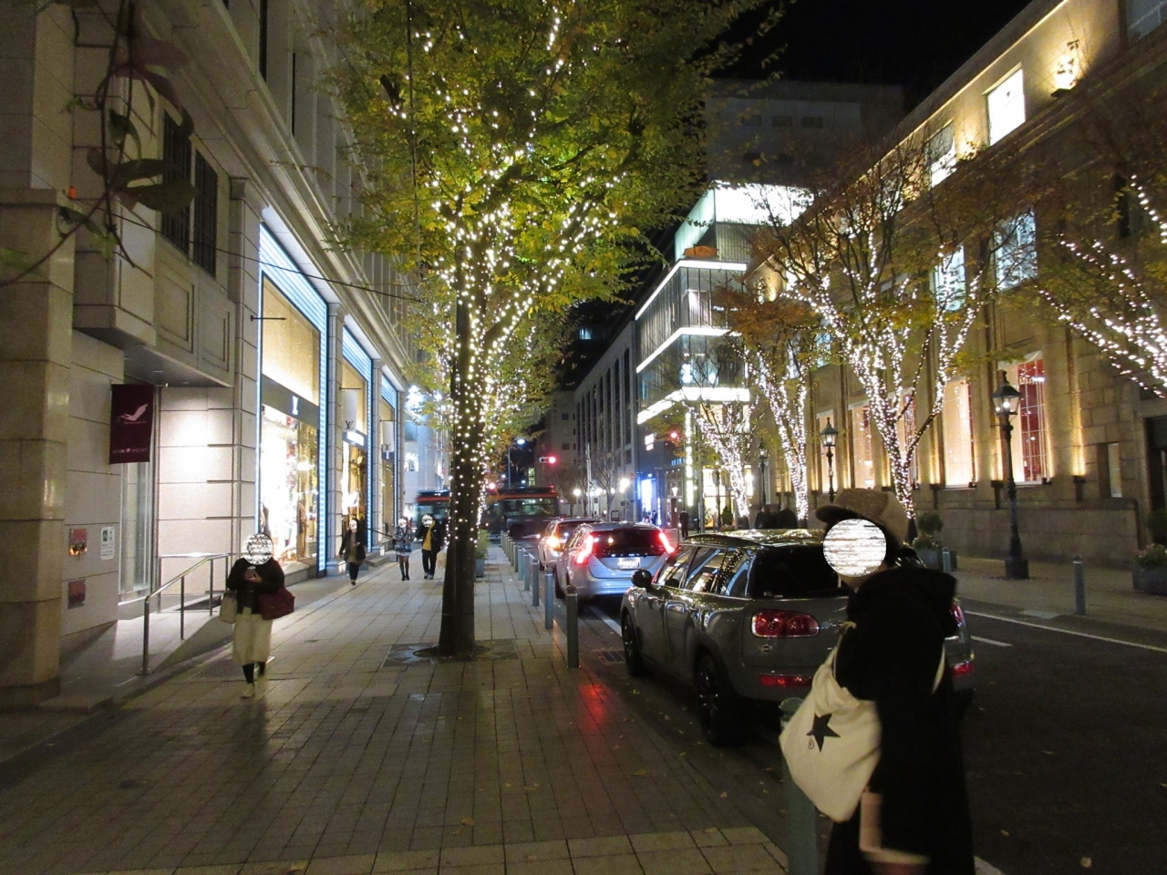 12月の名物イベント「ルミナリエ」がなくなって久しいですが、それでも街路樹が電飾で照らされていて、レトロビルの街並みは 華やかな雰囲気でした。- 旅行時期
