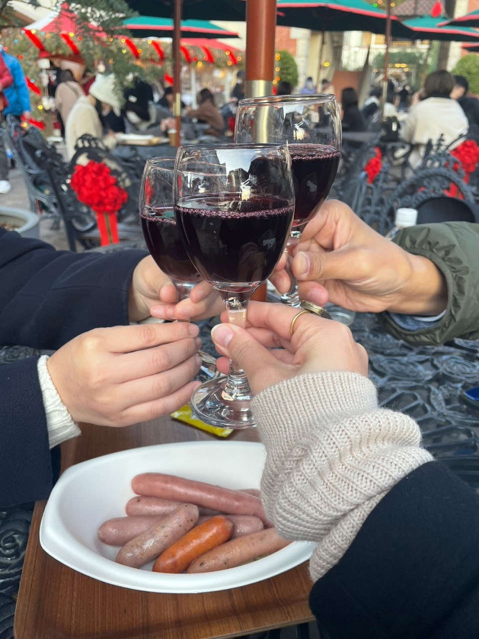 家族連れやカップルが多い中、会社の同僚女性たちと「ホットワイン」で乾杯してきました。- 旅行時期