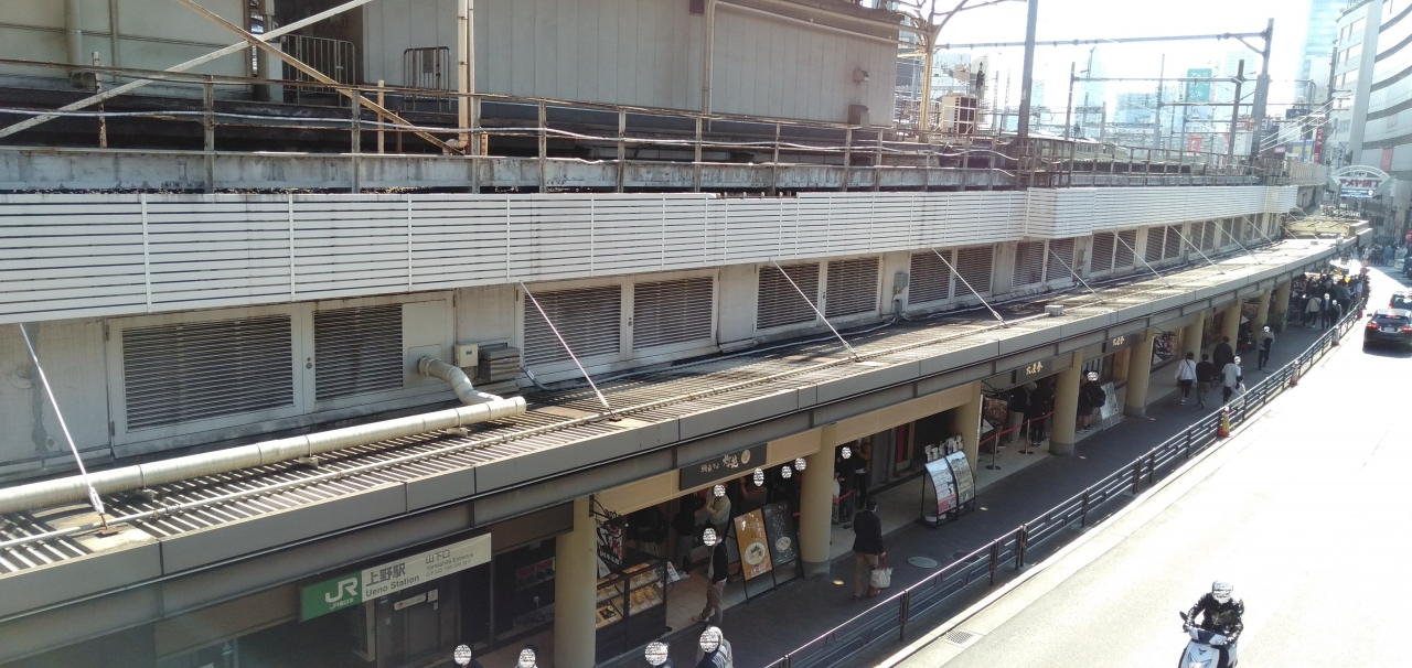 JR御徒町の改札を出て、上野方面へと横断歩道を渡ったところ、つまり「アメ横」の入口にあるのが、この「第1上野町橋 高架橋」です。