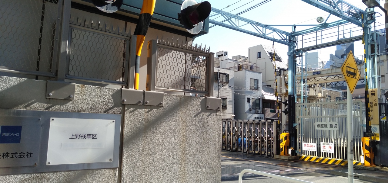 上野駅と日比谷線・入谷駅の中間あたりにある「上野検車区」は、東京メトロ・銀座線の車体検査場。