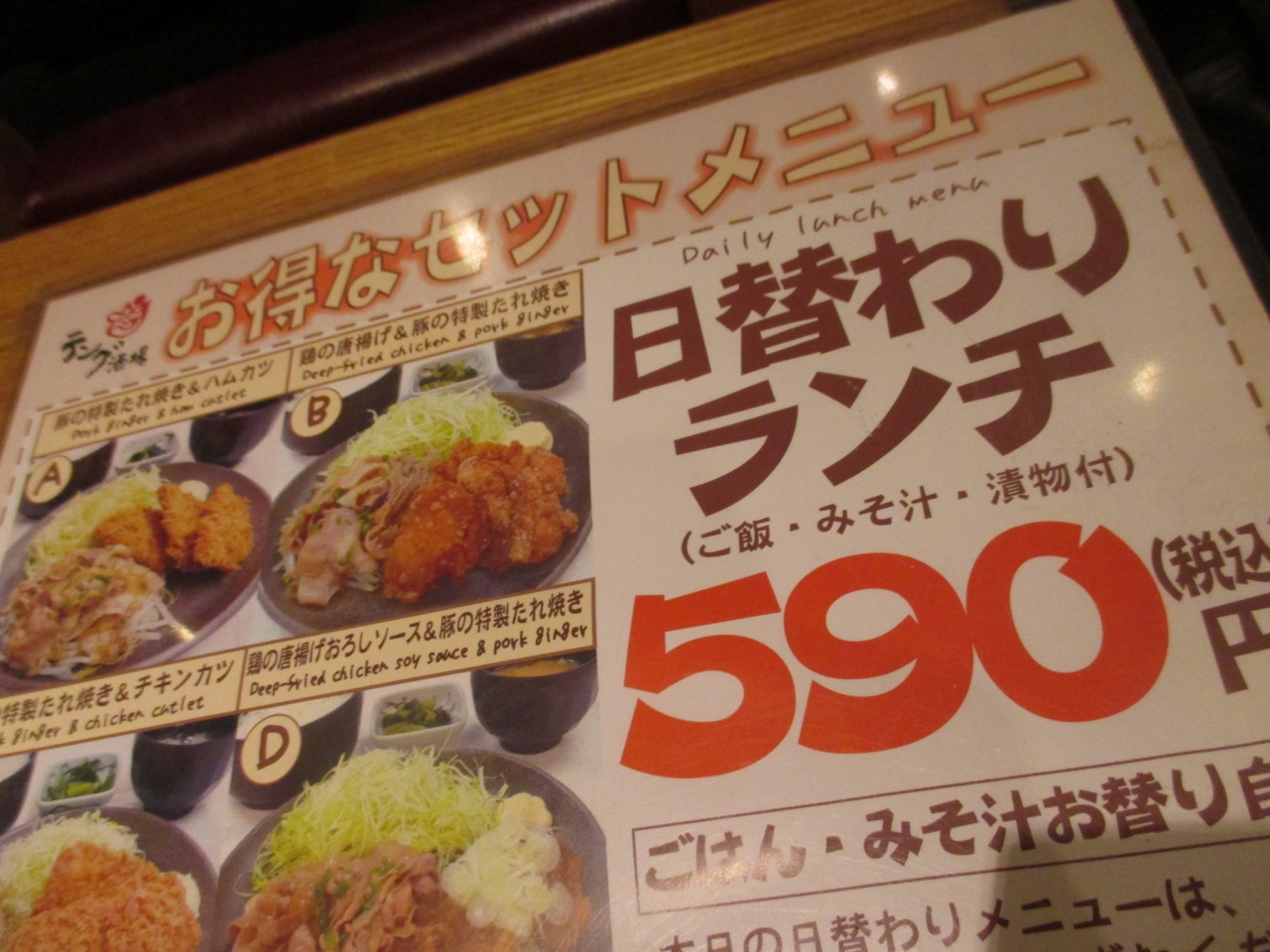 昼時は「お得なセット」が590円で味わえます。