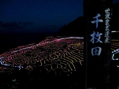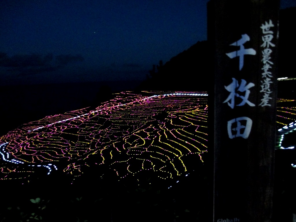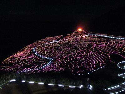 淡い光で千枚田を照らします。
