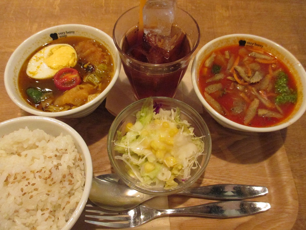 スープ類2つとご飯、サラダがついたダブルセットや、パスタとスープのセットなど、選べるセットメニューが充実していて、値段もさほど高くなく、おすすめの店です。