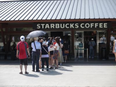 6両編成のうち自由席はわずか1両と少なく(シーズンによって変わるでしょうが…)、出発時刻の1時間前にはホームに列が出来ています。
