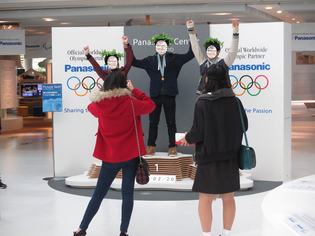 マッサージ器や、ビデオカメラといったパナソニックの新作家電を展示しているほか、正面入り口では、企画展示を行っており、3月末までは東京オリンピックに向けた特別展示を開催中。