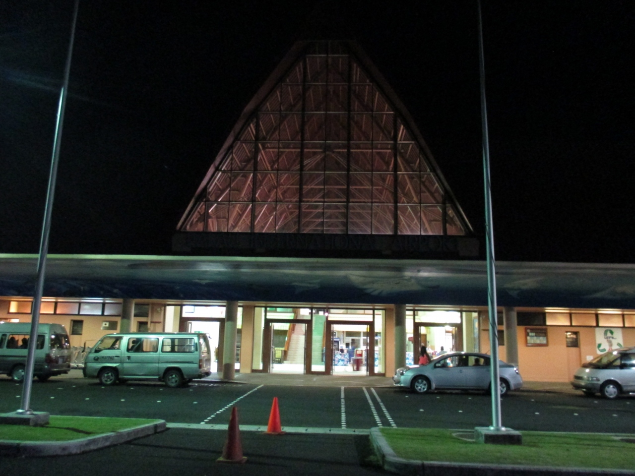 大きな三角屋根が特徴的な南国の空港。
