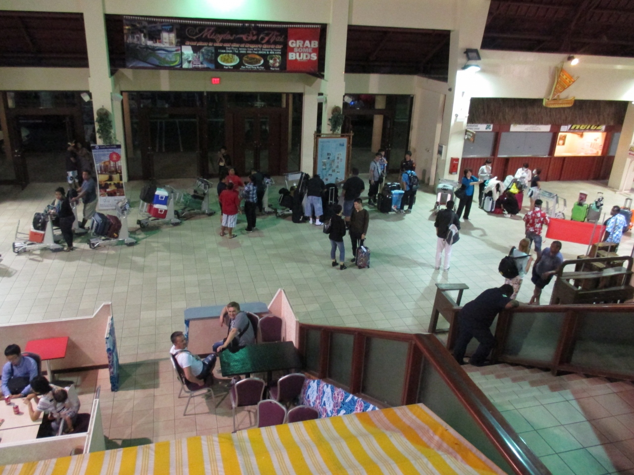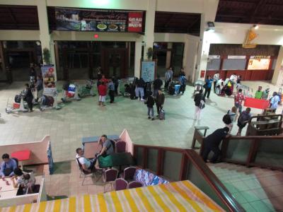 飛行機は1日に3便ほどしか到着せず、省エネのためか館内の照明は薄暗い(笑)