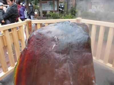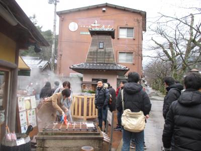 店名にもなっている「ジェラート」とともに、この店のウリが、網袋に入った玉子を、吹き出す源泉につけて自ら作る「温泉たまご」