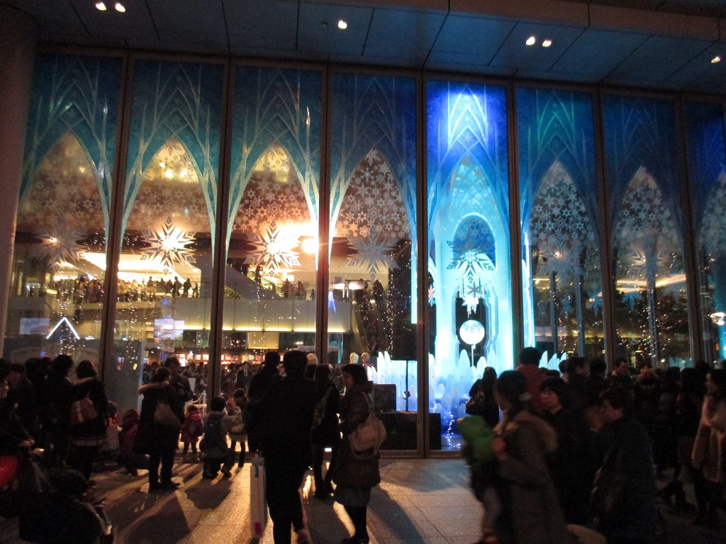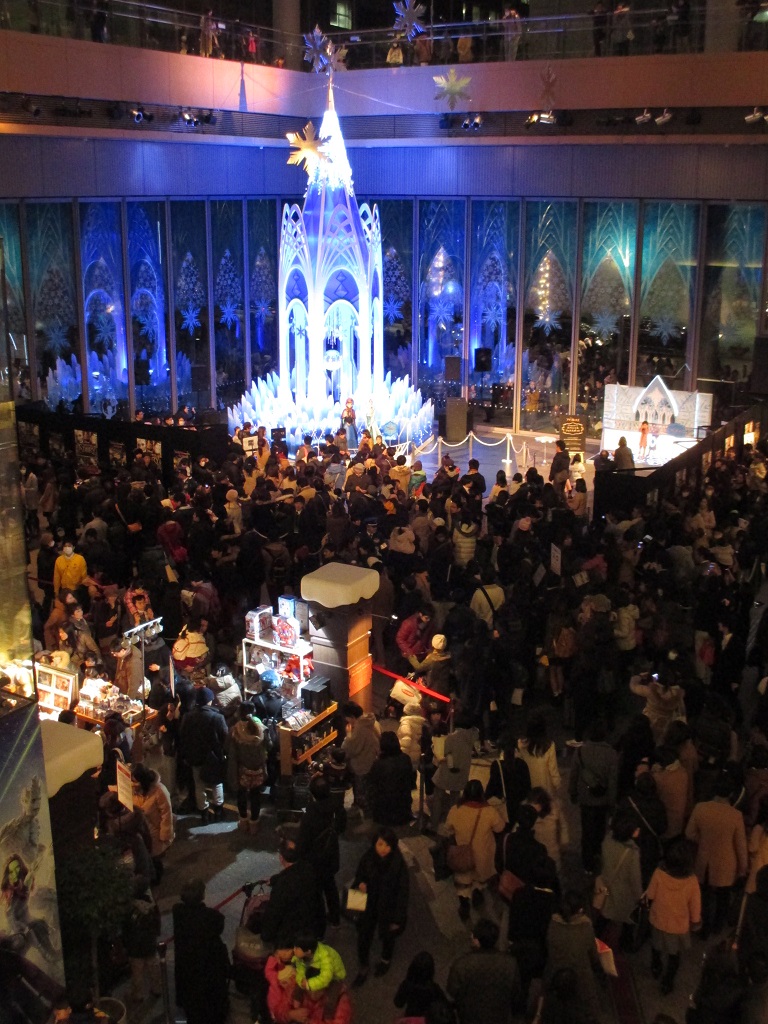 この冬、「ディズニー・タイムレス・ストーリー ~ブライトクリスマス2014~」が開催中の丸ビルは、「アナ雪」で大混雑中です。