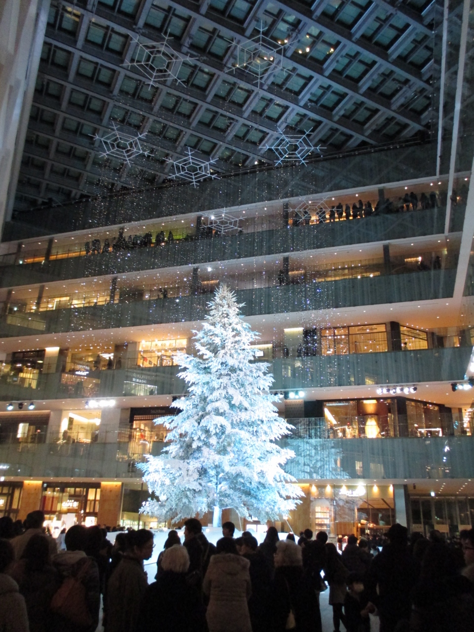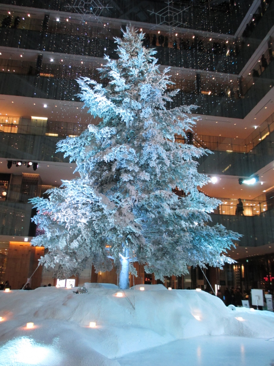 天井には雪の結晶がデザインされ、真っ白なツリーとのムードは満点です。