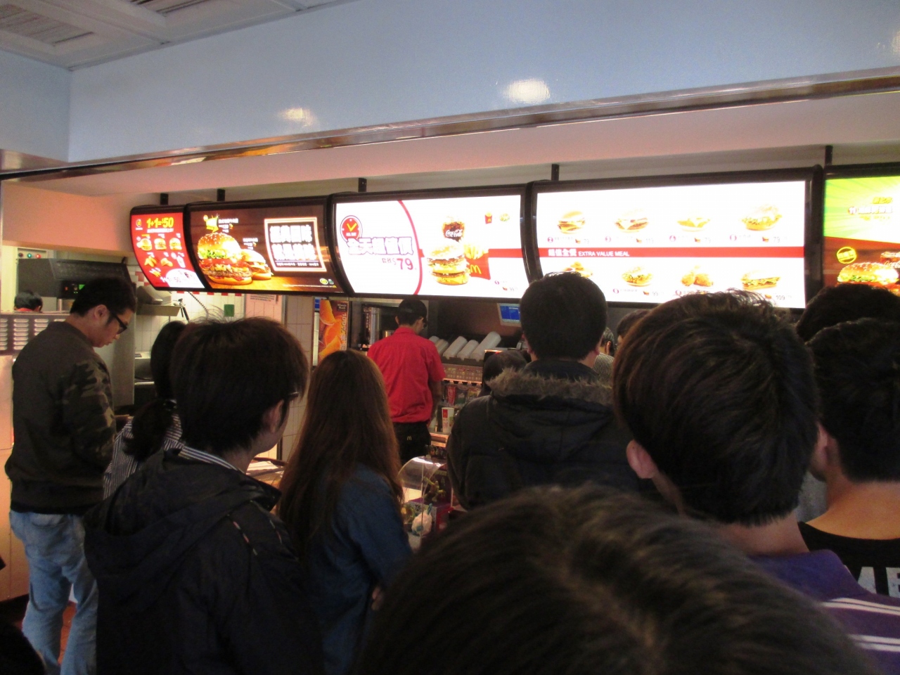 日本では売り上げが落ちているマクドナルドですが、昼時に入店した台北のマクドナルドは、店に客が入りきれないほどの大行列でした!!