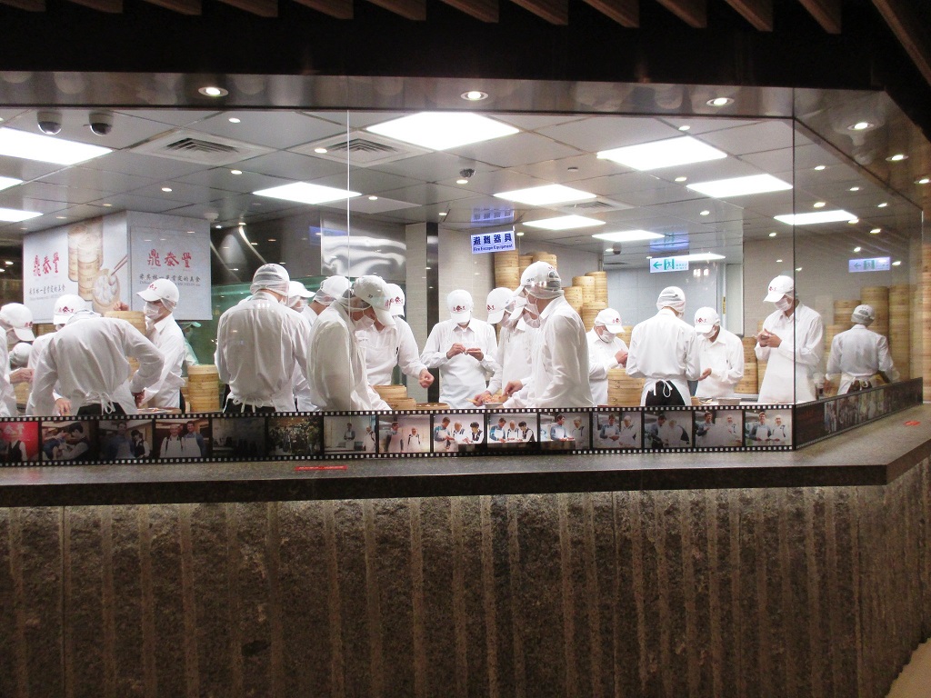 日本人の口にも合う美味しい小龍包の数々は、ガラス張りの厨房で、せっせと作っていました。- 旅行時期