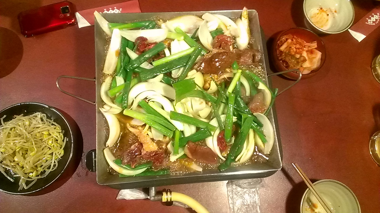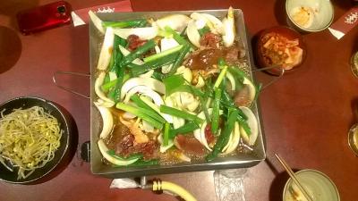 四角い鉄の鍋で焼いていくホルモンは、味がしみこみ実に美味しく、ビールがどんどん進みます。