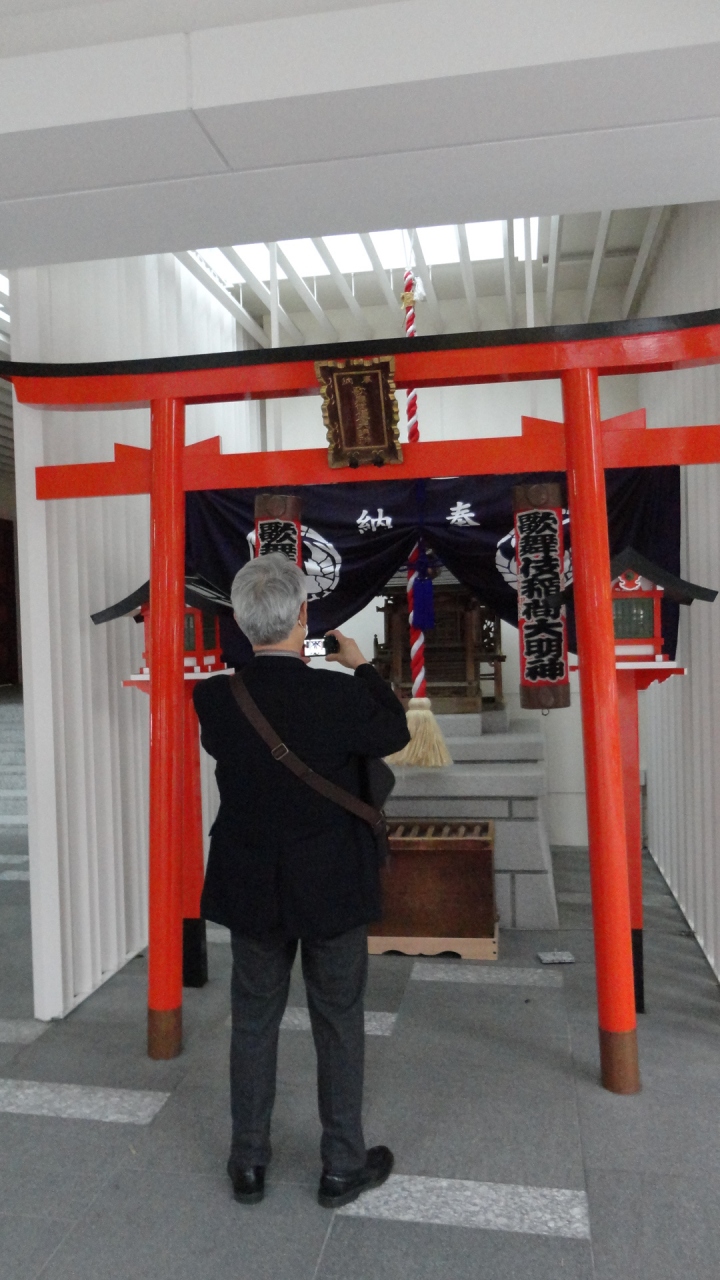 建物1階の隅っこにある「歌舞伎座神社」でお参りも出来、