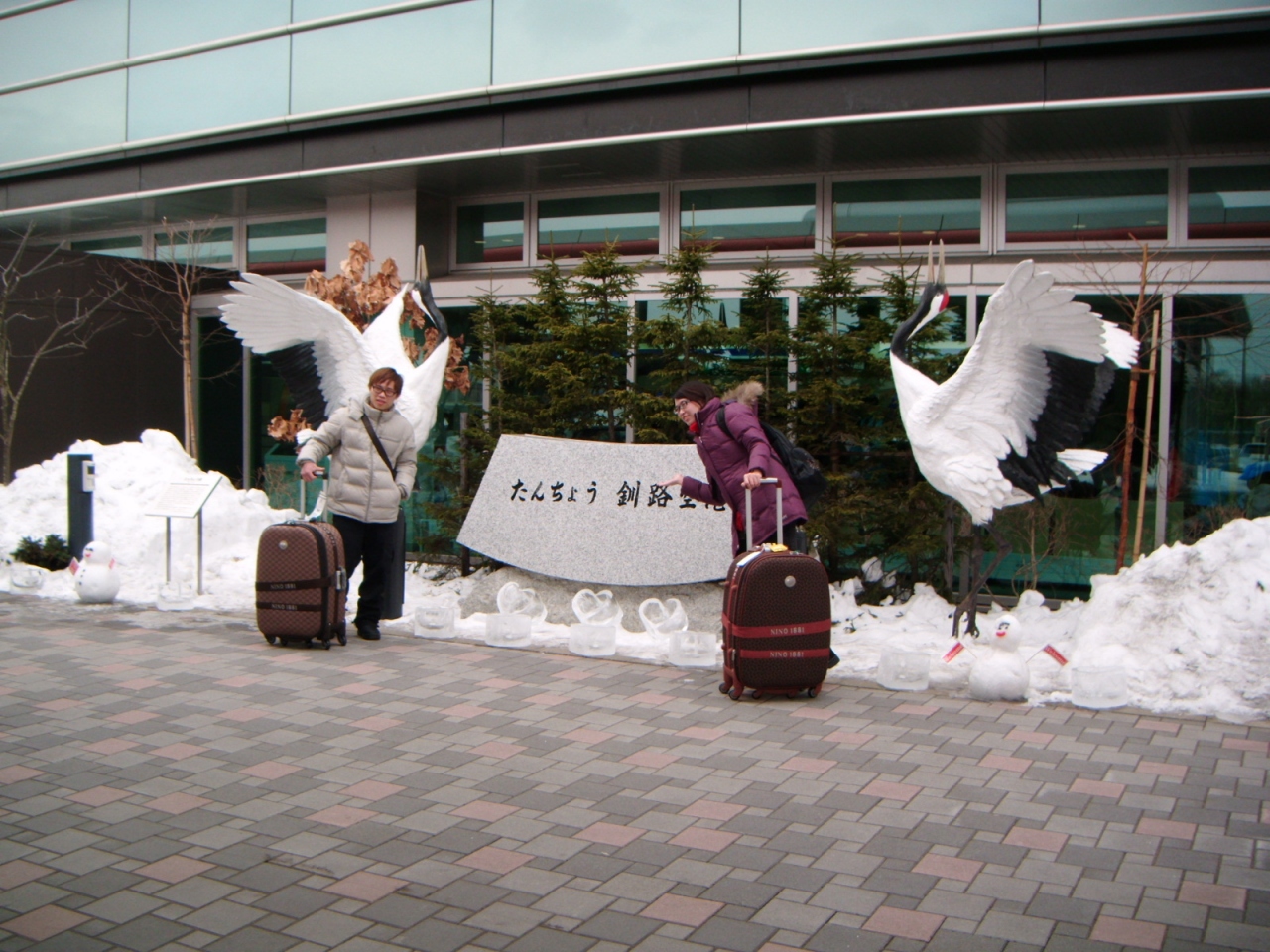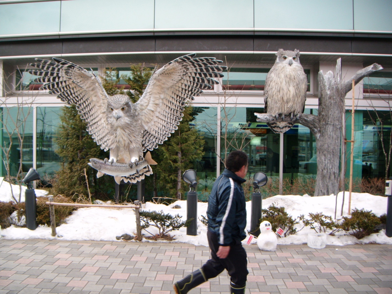 大きな羽根を広げ、旅人たちをお出迎え & お見送り。