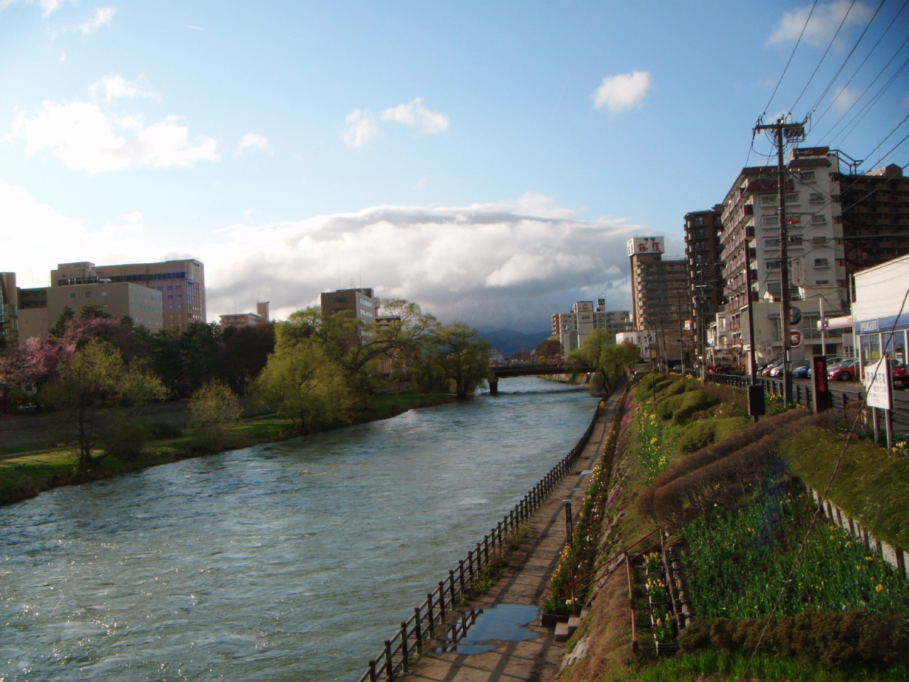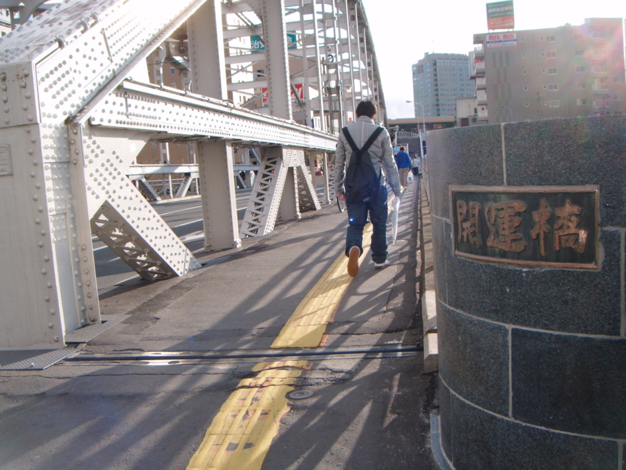 盛岡駅から歩くこと約5分。その名も素晴らしい【開運橋】のたもと辺りから、川沿いに続くのが、【啄木であい道】
