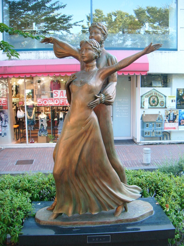 「ベルばら」などの金色に輝く銅像が立ち、