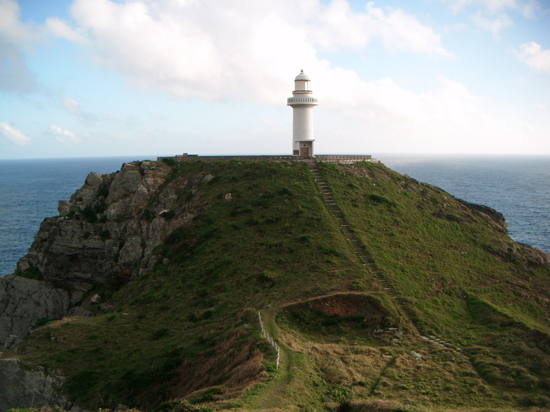 真っ白でキレイな灯台が、岬の突端に建っています。