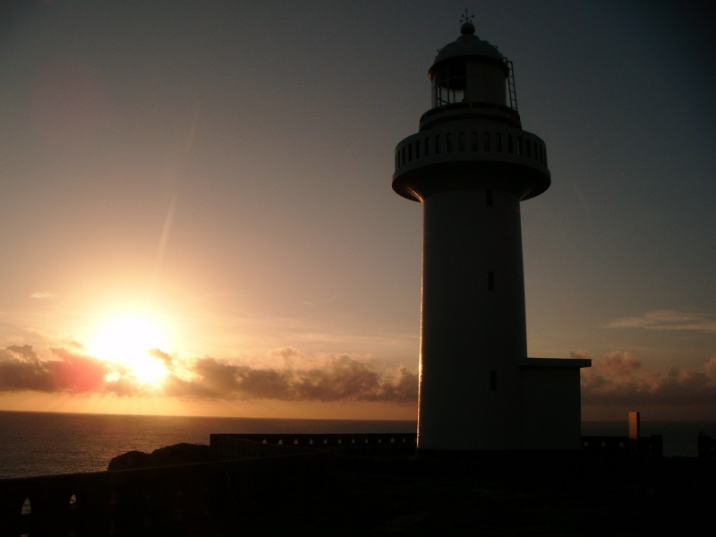 日本最西端に建つ 真っ白な灯台を、オレンジ色に染めます。