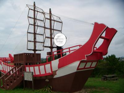 当時の船をイメージした朱色の「遣唐使船」