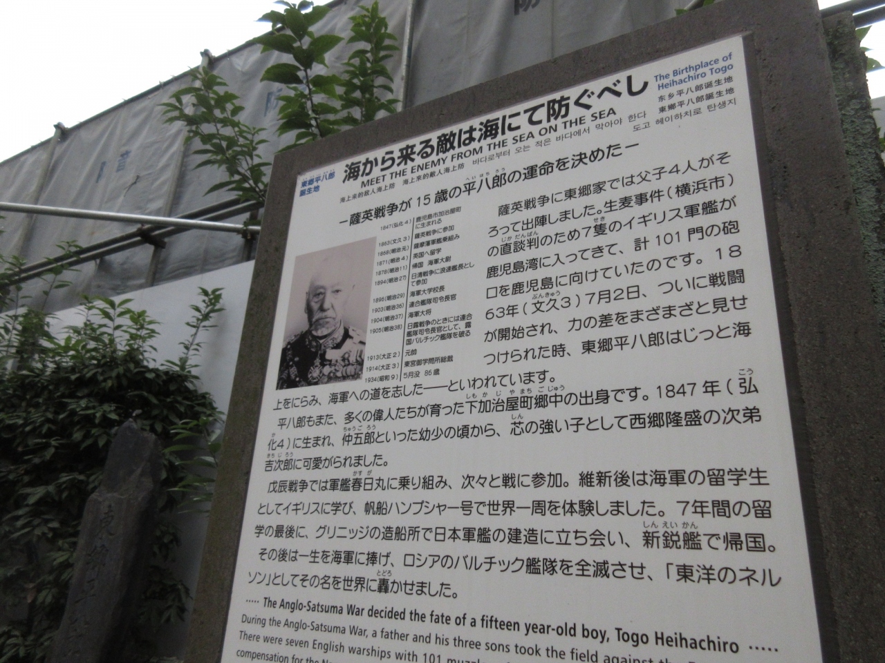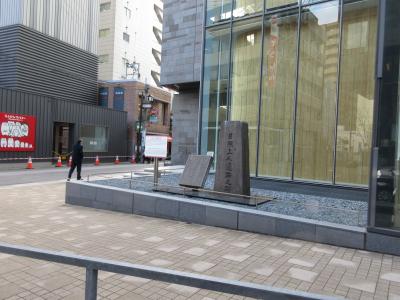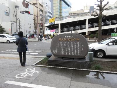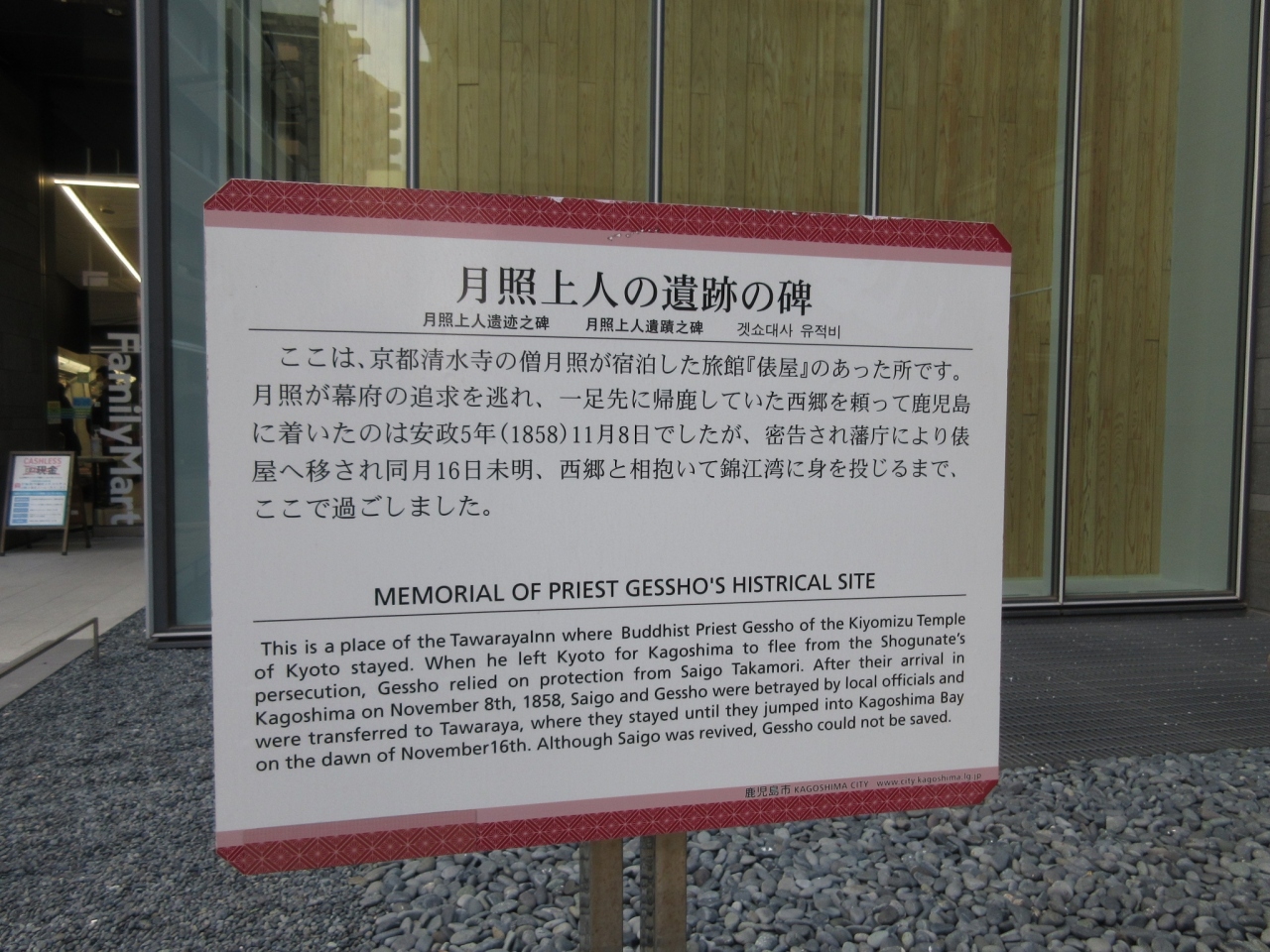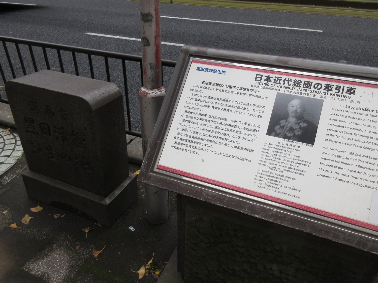 鹿児島の市電が「天文館」から「市役所」方向へとカーブする交差点の角に設置されている記念碑です。