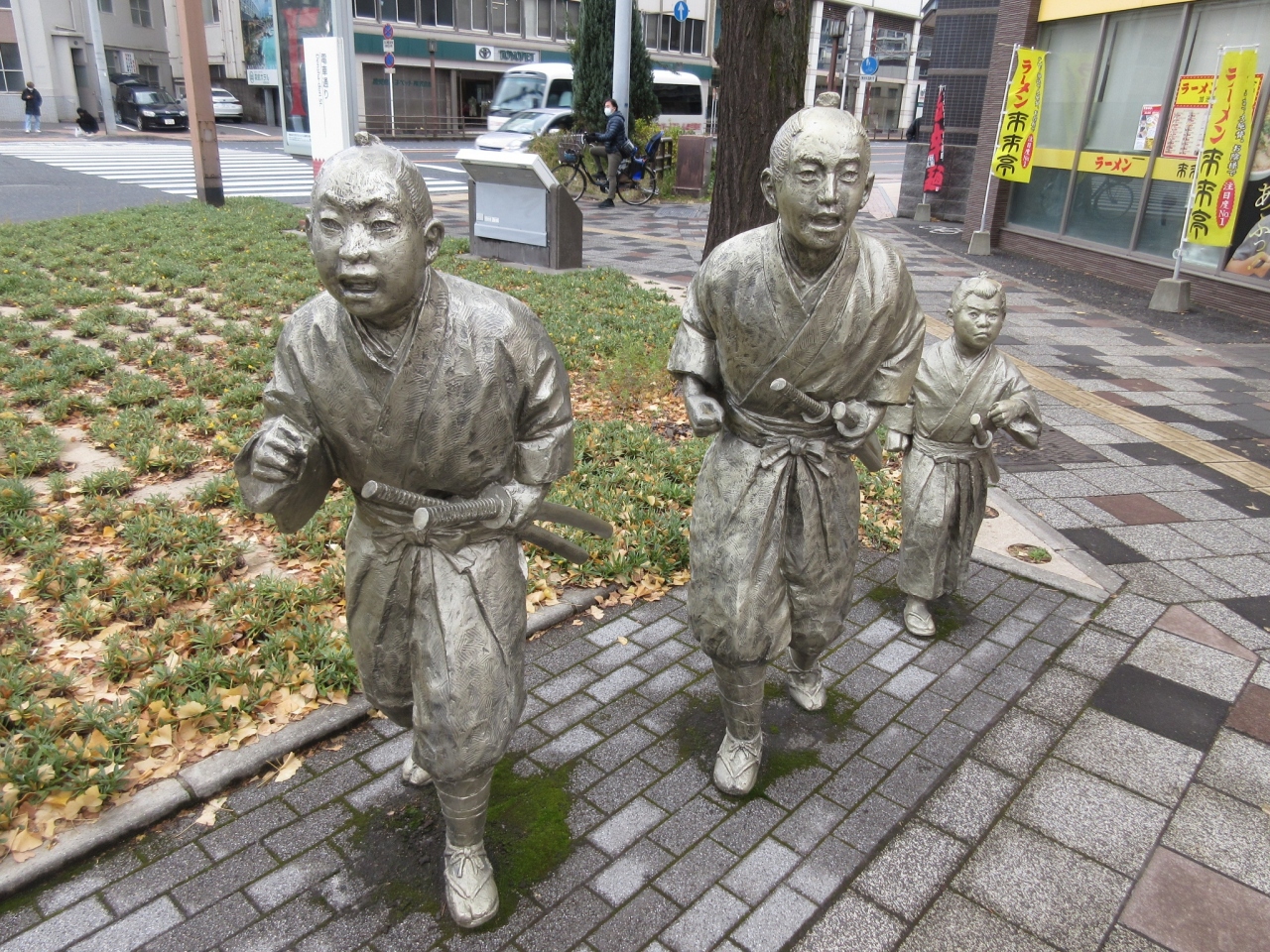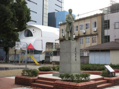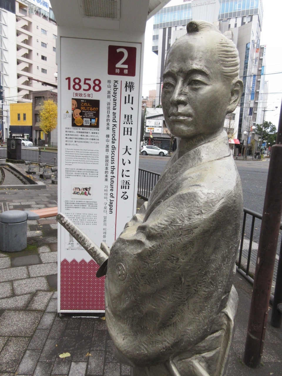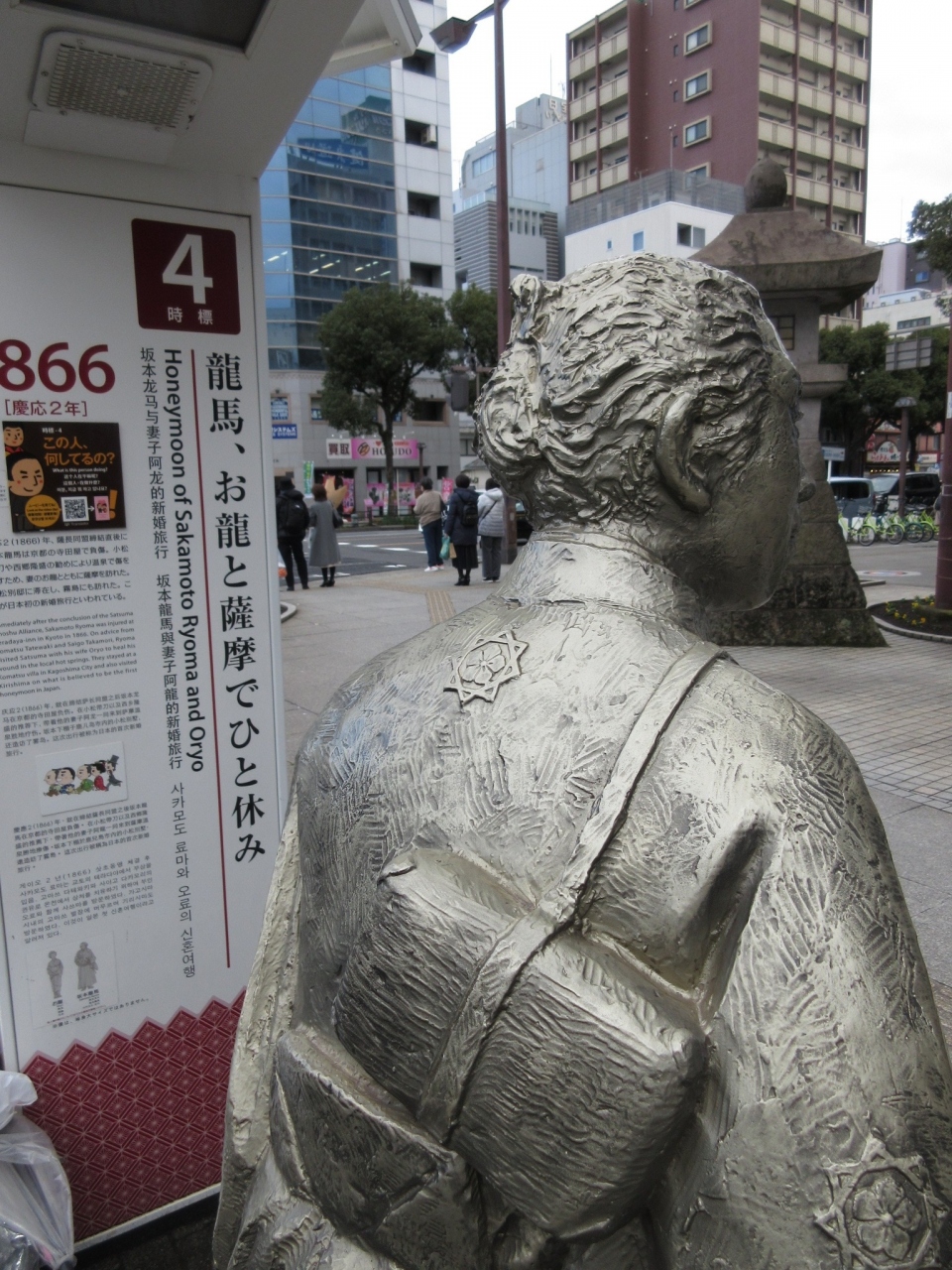 鹿児島市内の中心部、「高見馬場」交差点の近くにたつ「時標(ときしるべ)シリーズ」の銅像です。
