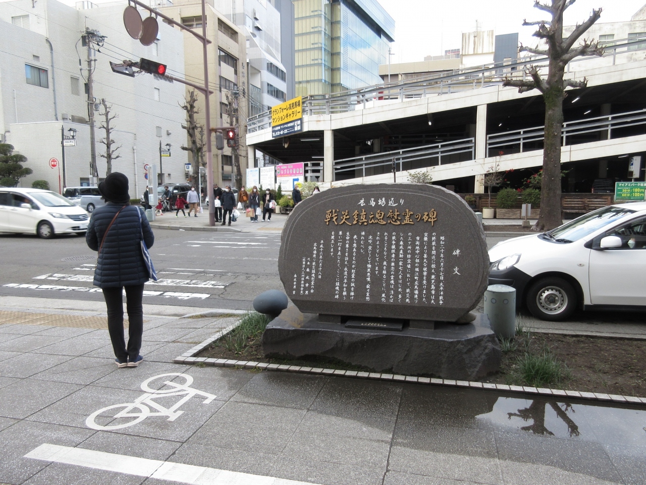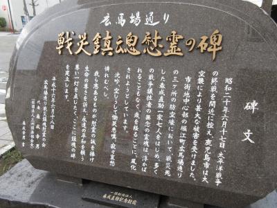 鹿児島の市電が「天文館」から「市役所」方向へとカーブする交差点の角に設置されている この「戦災慰霊碑」