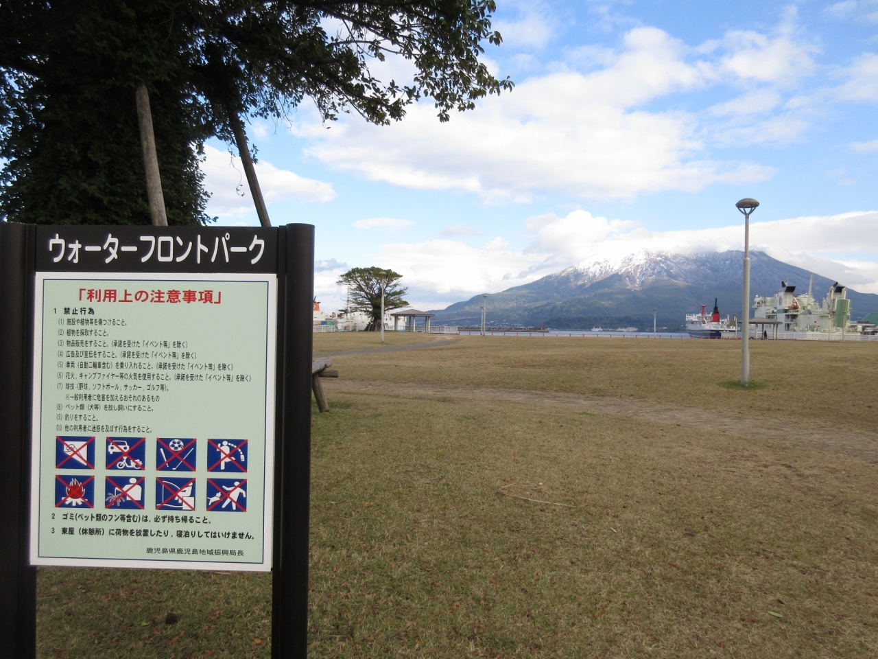 鹿児島市内から、屋久島、種子島など離島へ向かうフェリー乗り場の近くにある この公園。