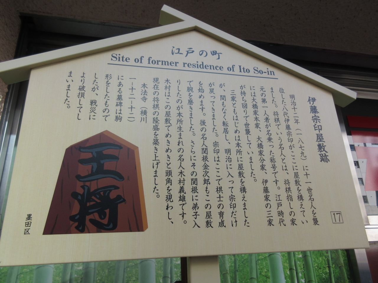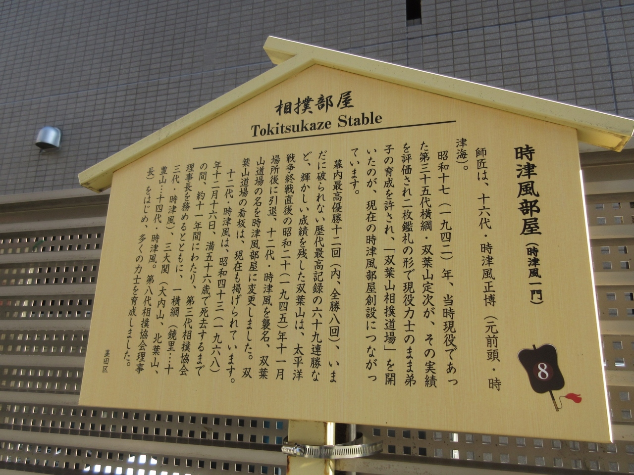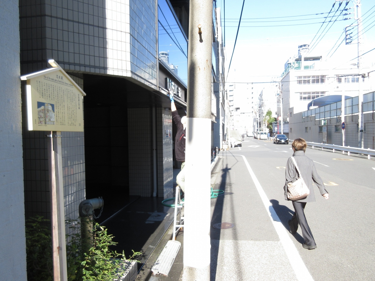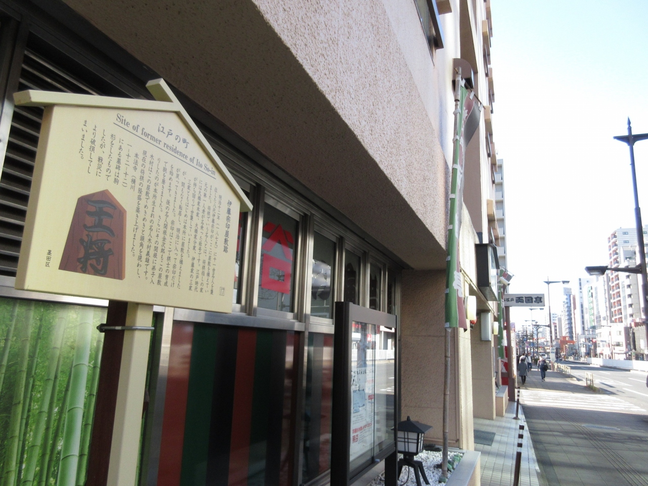 都営地下鉄・大江戸線の両国駅から 南方向へ徒歩5分ほど。首都高7号・小松川線の ほぼ真下、二之橋の北側たもとに看板が立てられています。