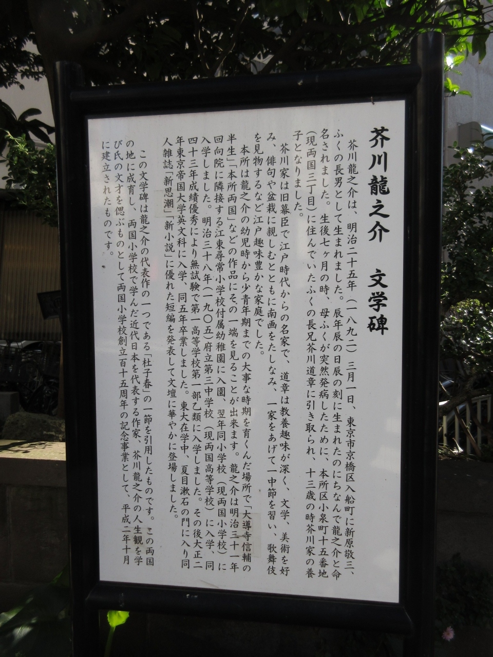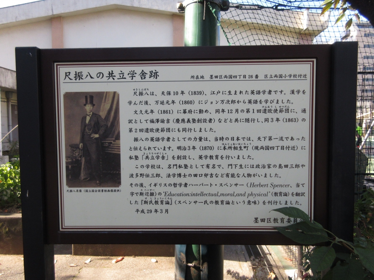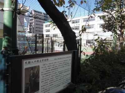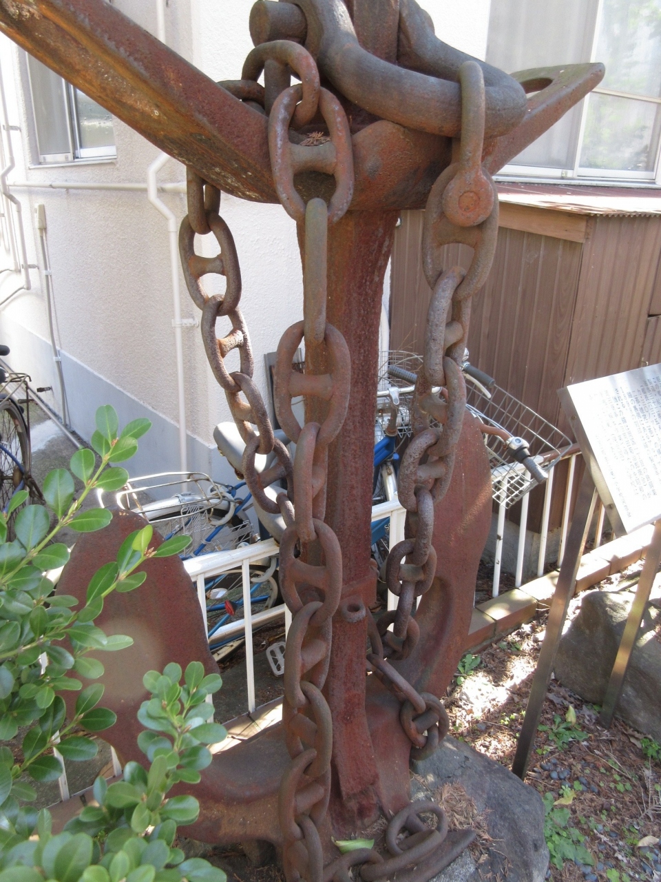 「日露戦争の軍艦の錨が、なぜ両国に?」と思いますが、説明によると、両国の鉄鋼業者が解体した際に「得た」そうで、それを「小学校」に寄贈したらしいんです。