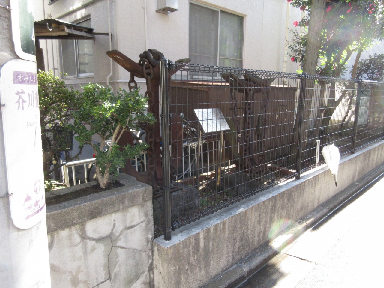 国道14号線・京葉道路から1本 南側に入った「両国小学校」の北西角に設置されている「芥川龍之介 文学碑」の真横、金網フェンスの奥にあるのが、この「駆逐艦・不知火の錨」