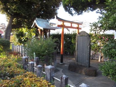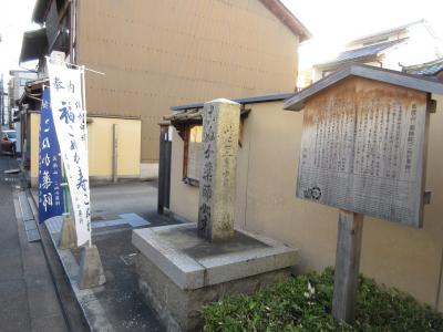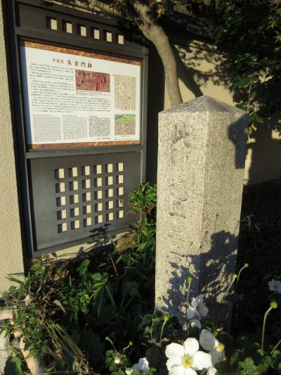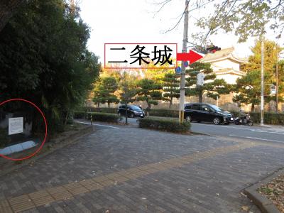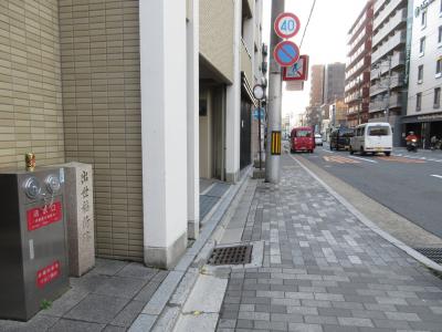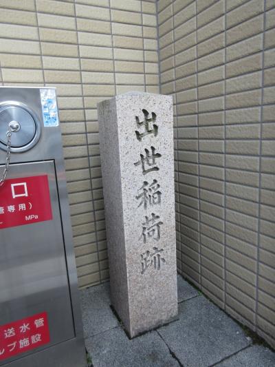 「二条城」の西側、「平安京・朱雀門跡」の やや北側のマンションの敷地内に「出世稲荷跡」と刻まれた 小さな石碑が建っています。