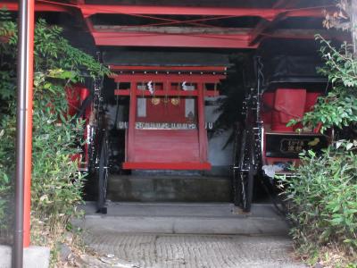 「車」にまつわるからなのでしょうか、狭い境内には 渡月橋周辺で営業する「人力車」が2台止められていました。