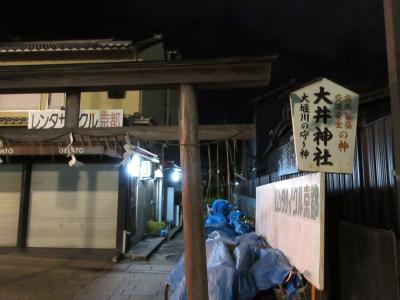京都・嵐山の観光スポットになっている「渡月橋」の北側、土産物店が並ぶあたりに「立て看板」が出ていますが、社殿は さらにその奥の脇道を入っていったところにあります。