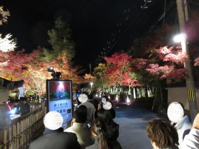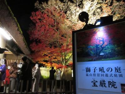 春は桜、秋は紅葉と、四季を通じて人気がありますが、意外にも「紅葉のライトアップ」を実施しているスポットは少なく、この「宝厳院」のライトアップに 多くの人が殺到。入山に30分ほど並びました。