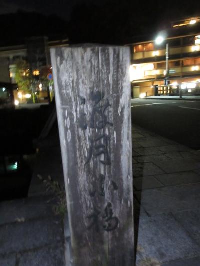 京都・嵐山の観光スポットになっている「渡月橋」の北側、橋を渡り切った右手の「配電盤」の横に 小さな石柱が建っています。
