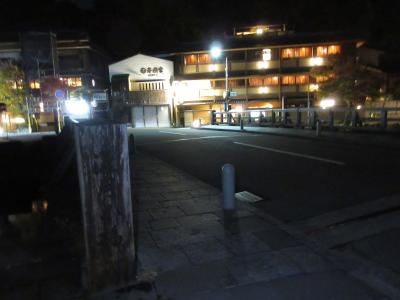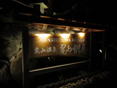 阪急・嵐山駅を下車し「渡月橋」方面へと向かう途中、温泉宿が多く点在しています。