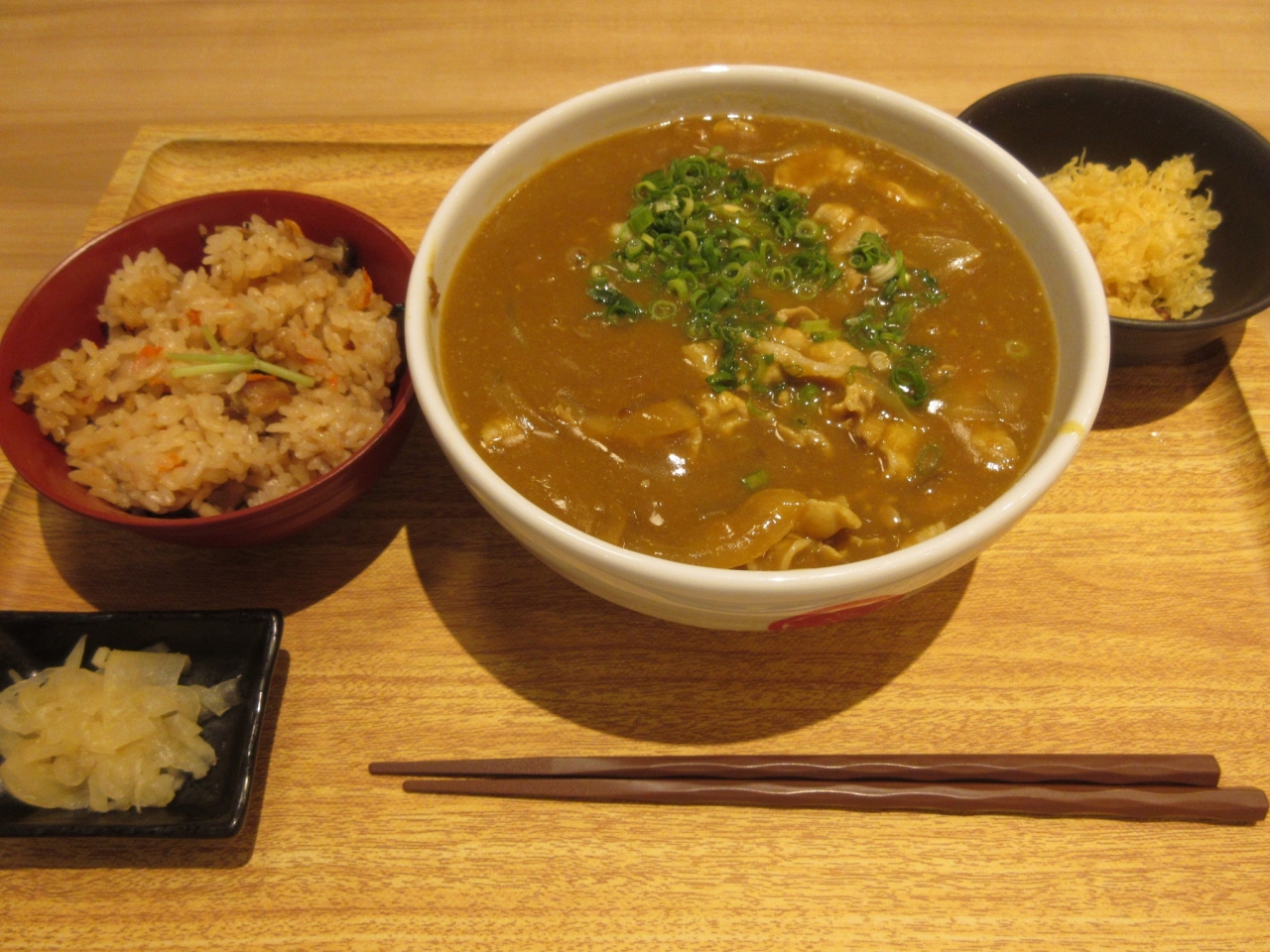 和食、洋食、喫茶店など、様々なジャンルがあり迷いますが、安定のチェーン店「信濃路」の店頭に「本日・カレー蕎麦500円」という張り紙を見つけ、即決で入店。