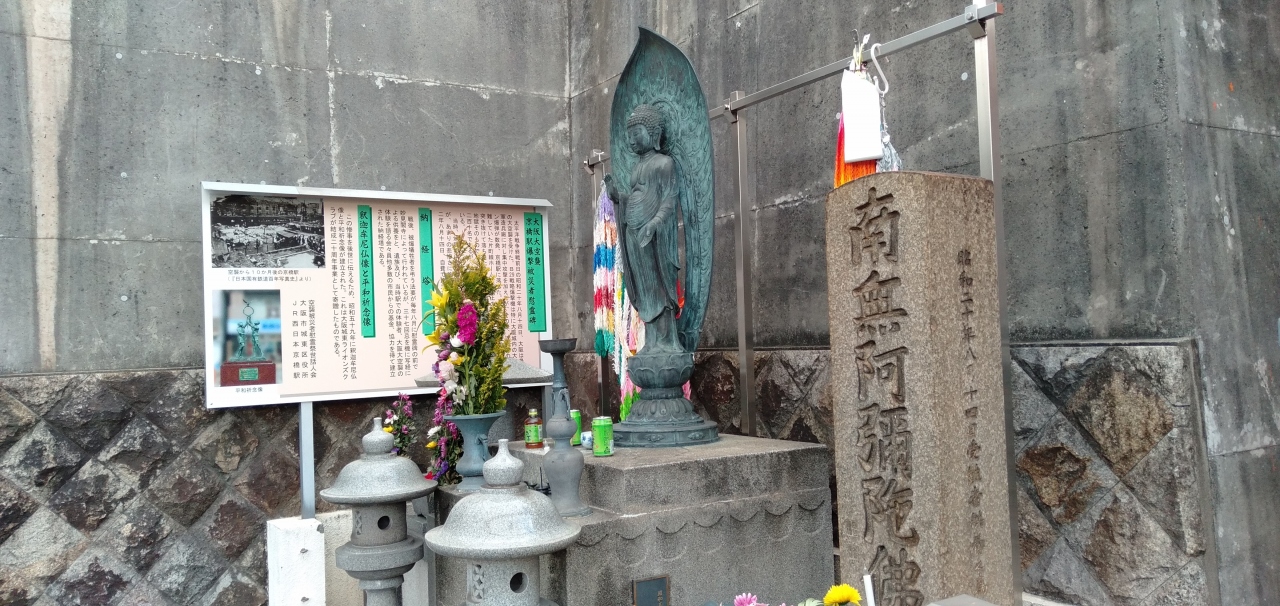 亡くなった方たちの供養のため、JR京橋駅の前に建てられた供養塔。