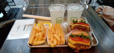 「アメリカン・サイズ」とでも言うような大きいパティのバーガーに、ポテト、レモネードがついたセットで、1人前の値段は1500円オーバー!!