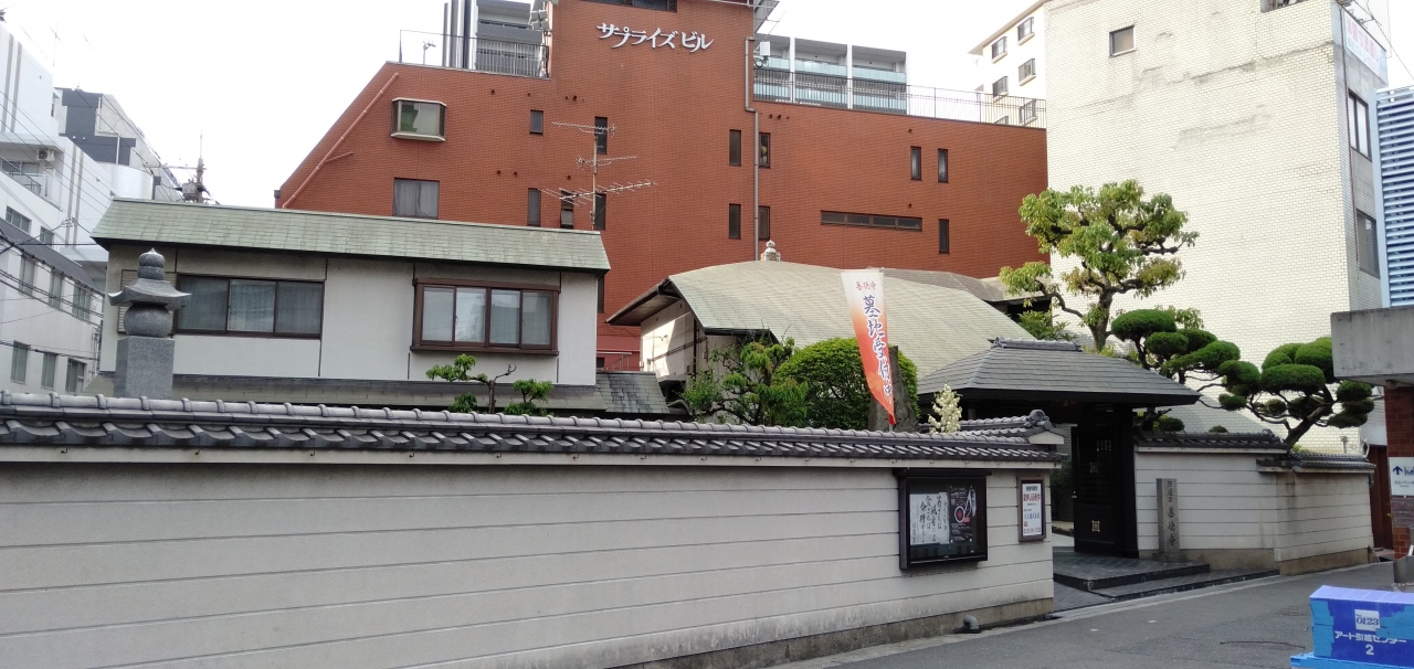 大阪メトロ・中崎町駅の至近、大阪・キタのビル群に囲まれた中にある日蓮宗のお寺。