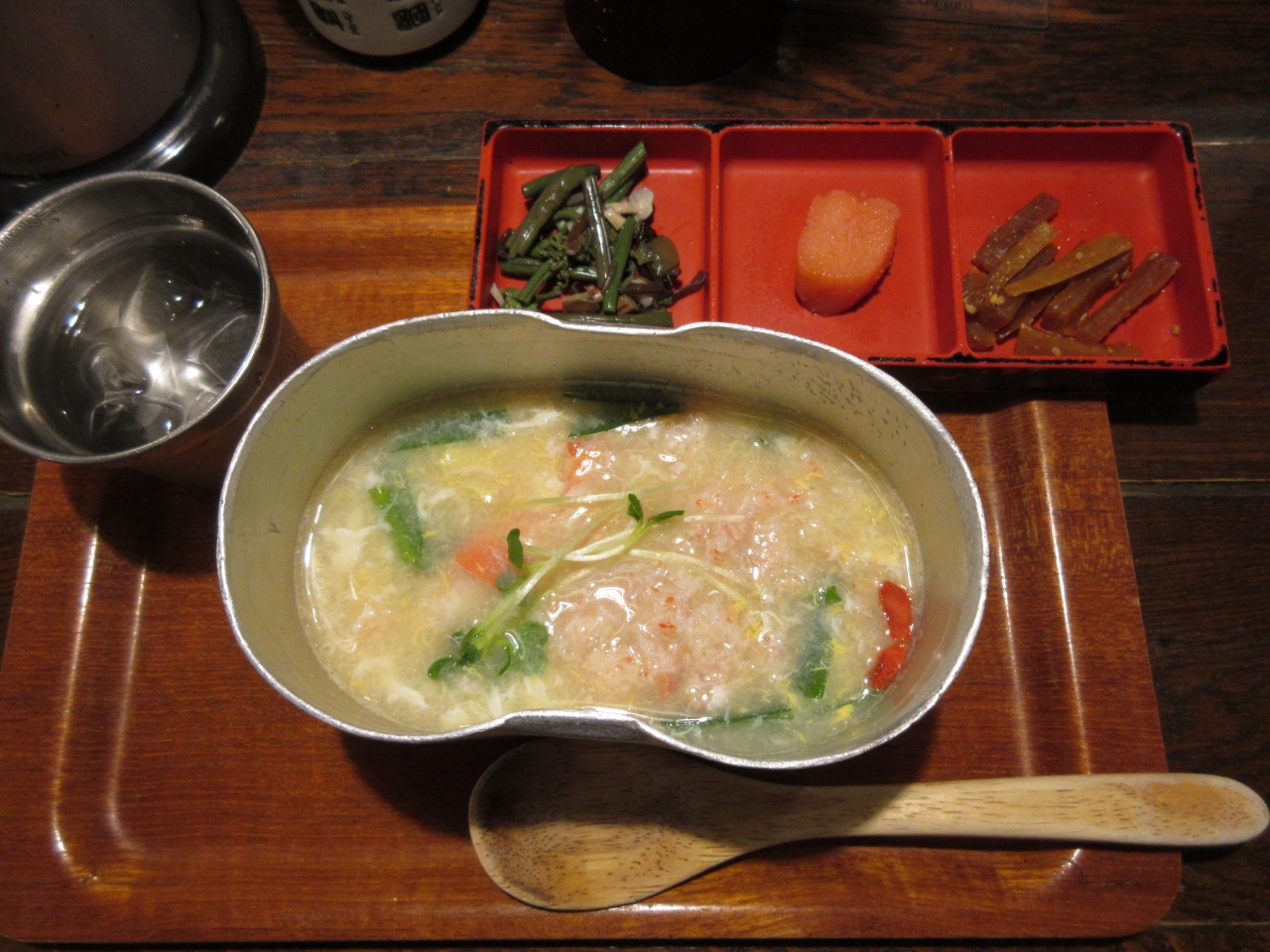 飯盒(はんごう)で雑炊を食べられる面白い店で、夕食にも良し、飲んだ後の〆にはさらに良しです。