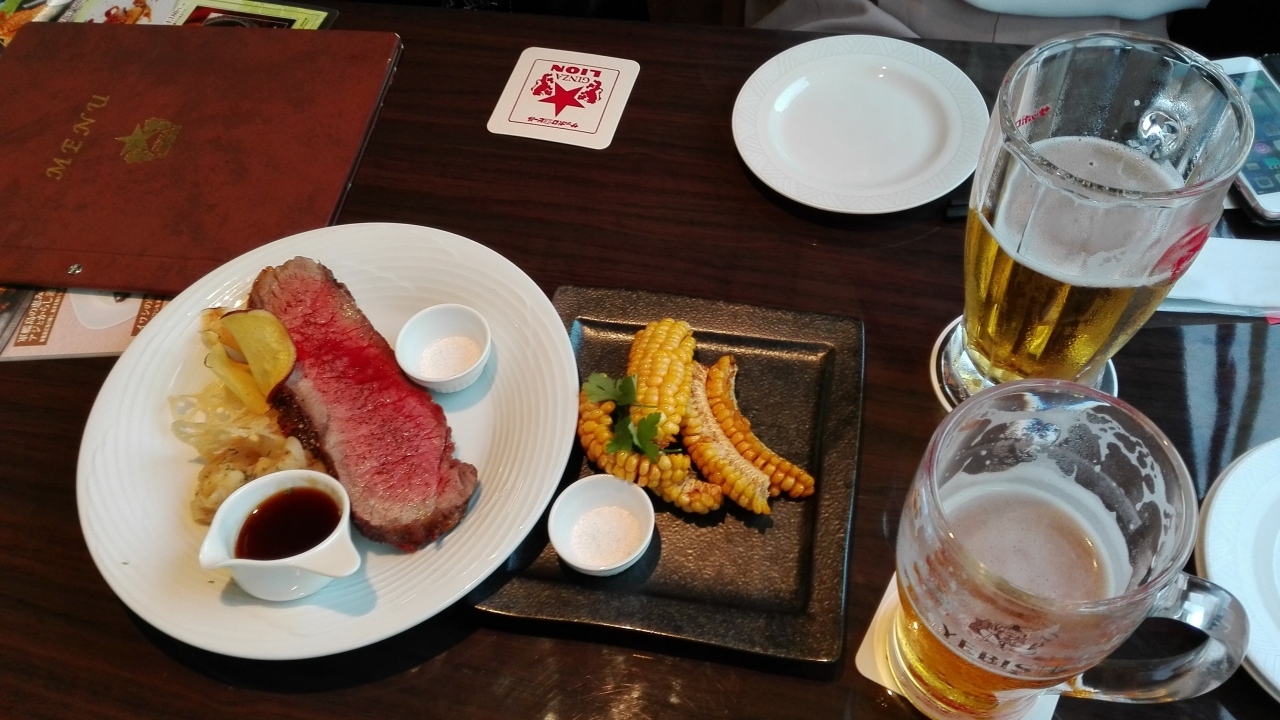 ビール、ソーセージ、ステーキなどと、これぞ「ビアホールの味」がたまりません!