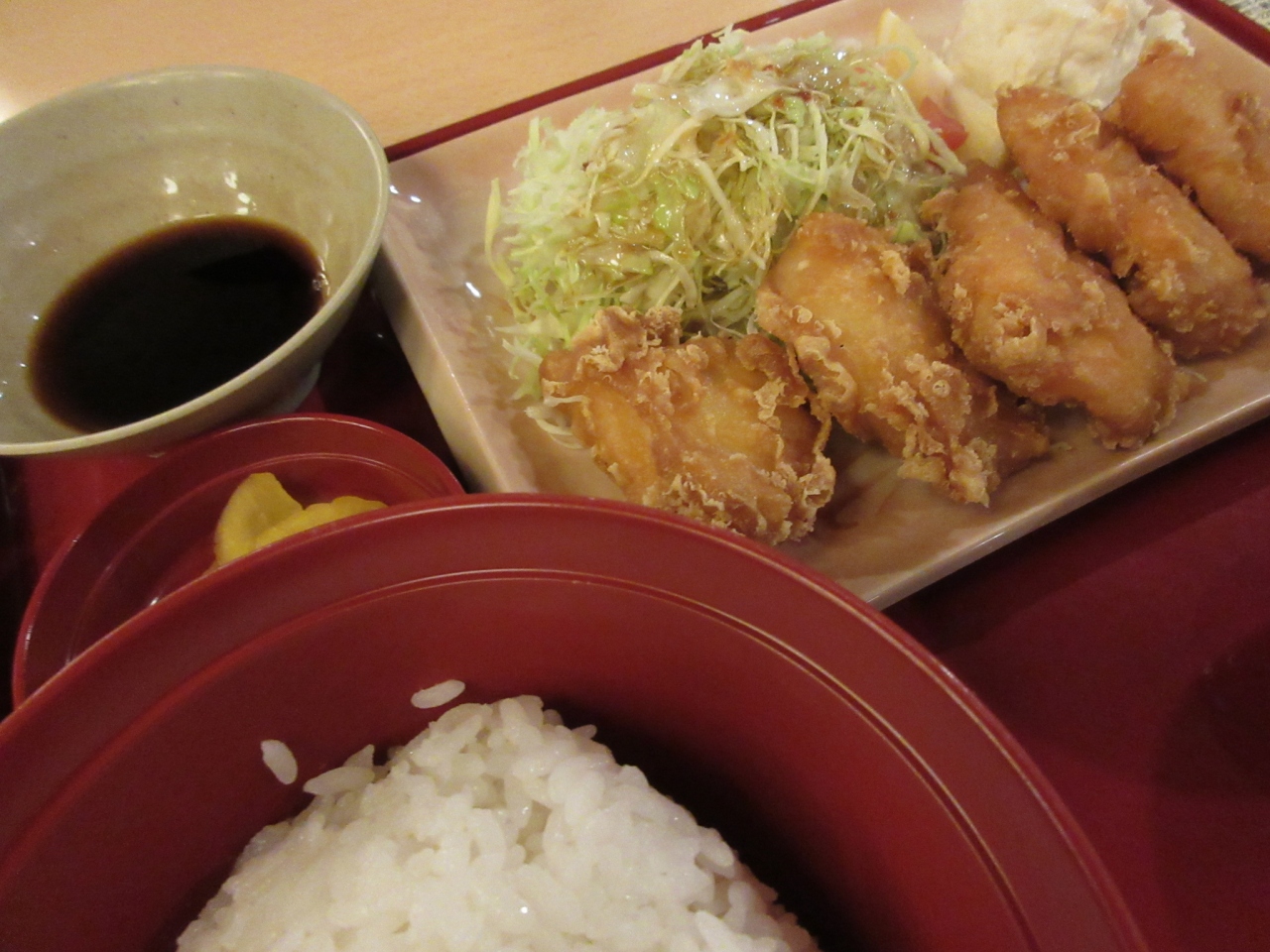大分名物「鳥てん定食」を注文しましたが、ごはん、味噌汁も全部ついて、税込530円と激安!