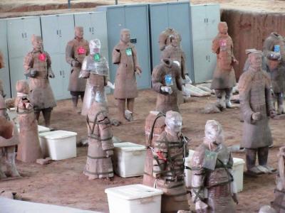 1号館から3号館まである「兵馬俑」は、いまも発掘・修復作業が進んでいて、各所で修復中の兵士を見ることができます。