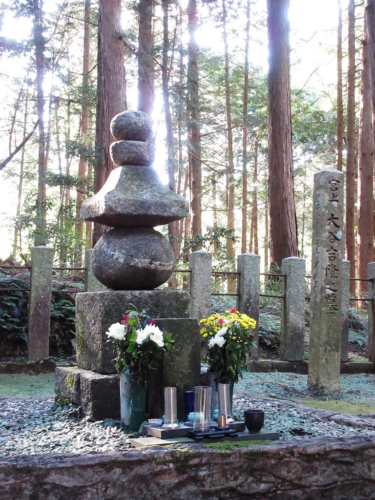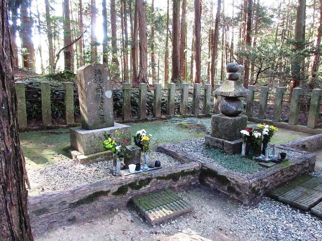 彼の墓は、木々がうっそうと茂った見つけにくい山の中に、ひっそりとあります。