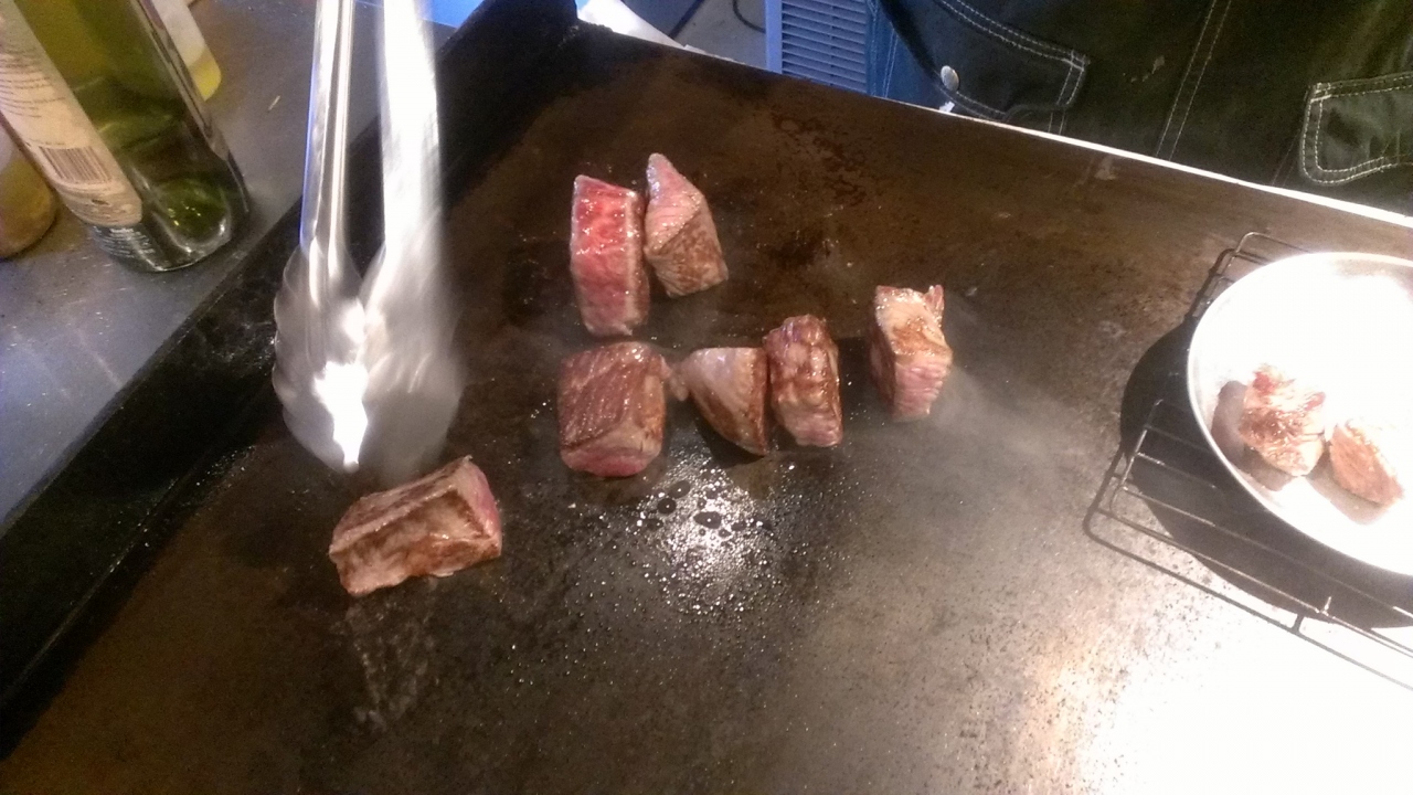 4000円ほどのコース料理には、サイコロステーキ、海産物のアヒージョ、カルパッチョ、冷製かぼちゃスープなどが付いており、どれも美味しくいただきました。- 旅行時期