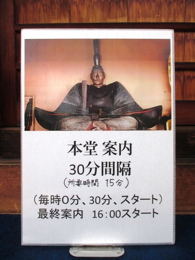また本堂の中には、高さ三尺八寸(115cm)の実物大の「信長公 木造」が鎮座。